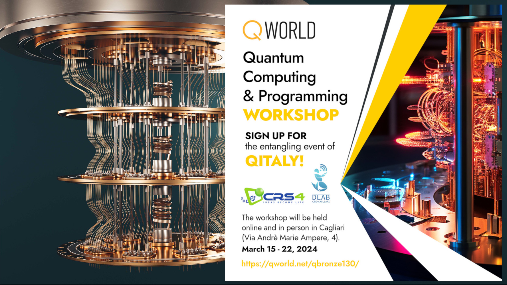 Il CRS4, insieme all’associazione internazionale QWorld specializzata nella formazione sulle tecnologie quantistiche, nell’ambito del progetto DLAB | Cagliari Digital Lab, di cui il Comune di Cagliari è capofila, organizzano dal 18 al 22 marzo dalle ore 17.00 in presenza all’ex Distilleria di Cagliari (via Andrè Marie Ampere, 4) e in modalità online, il workshop dal titolo “Qbronze-Quantum Computing and Programming”.