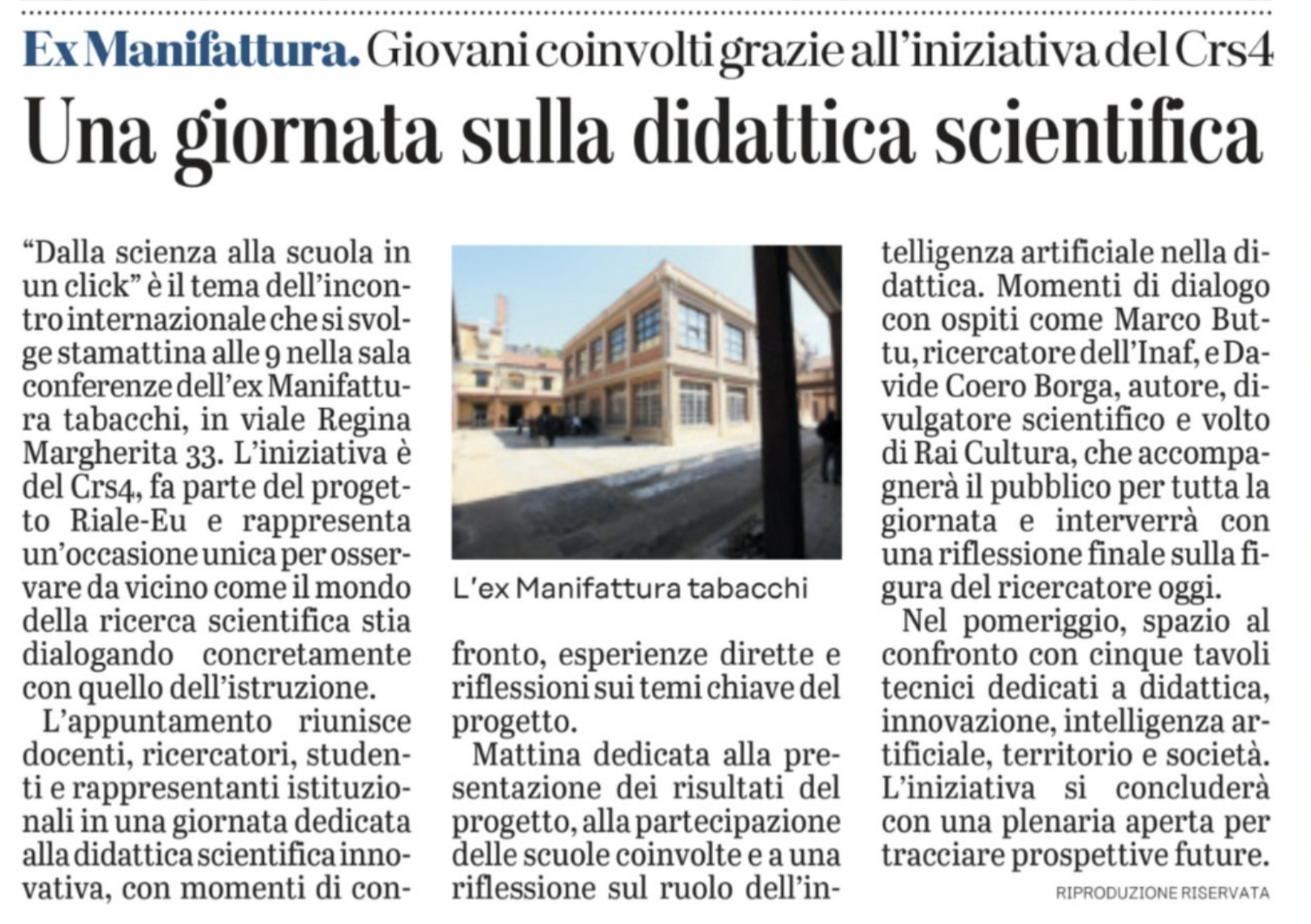 Ex Manifattura. Giovani coinvolti grazie all’iniziativa del CRS4. Una Giornata sulla didattica scientifica.